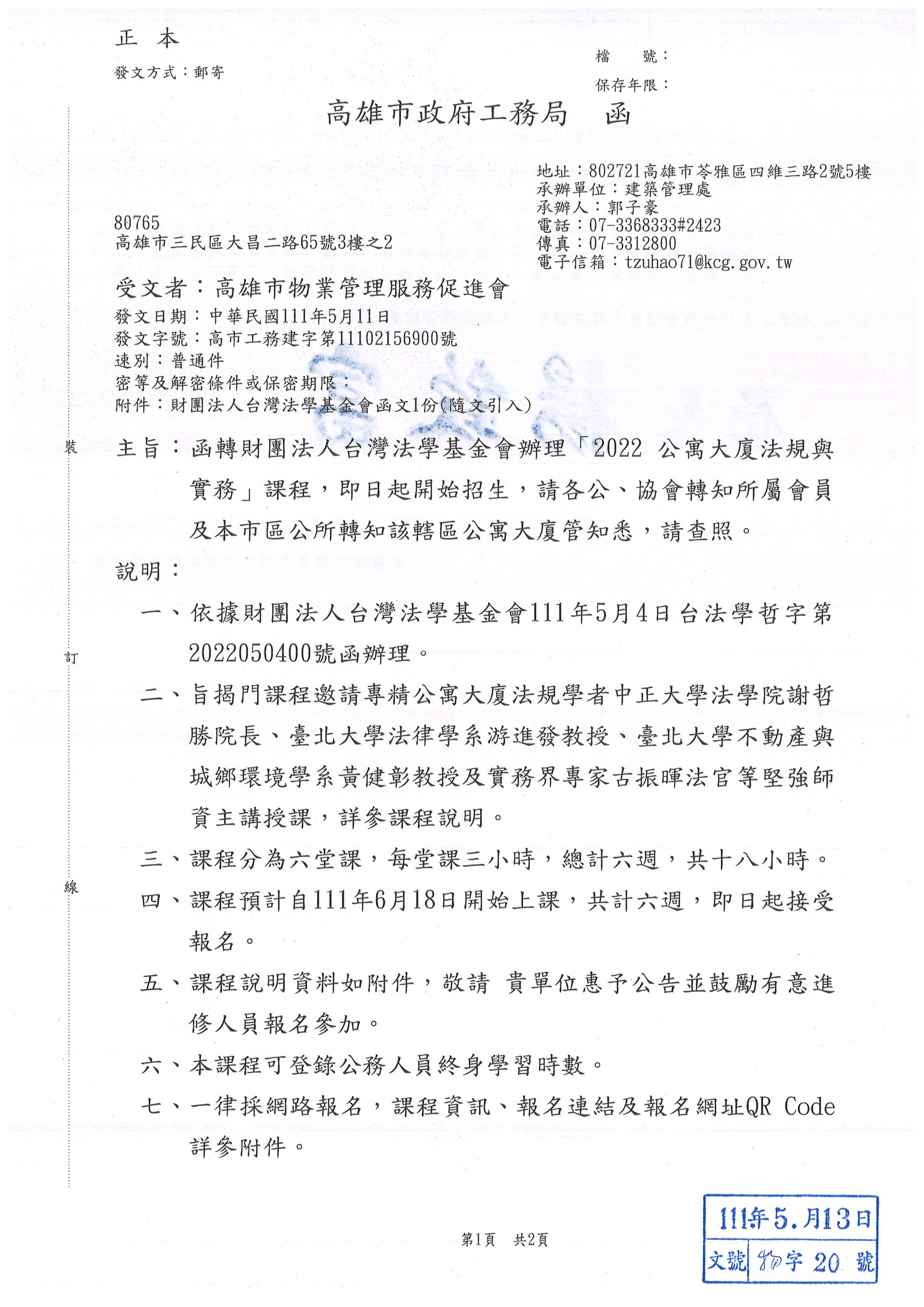 [2022公寓大廈法規與實務]課程,即日起開始招生